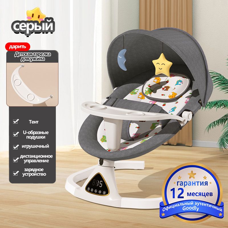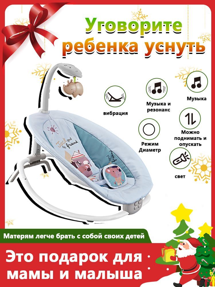 Электрокачели для новорожденного,Кресло-качалка,шезлонг для новорожденных от 0, с игрушками Bluetooth серый