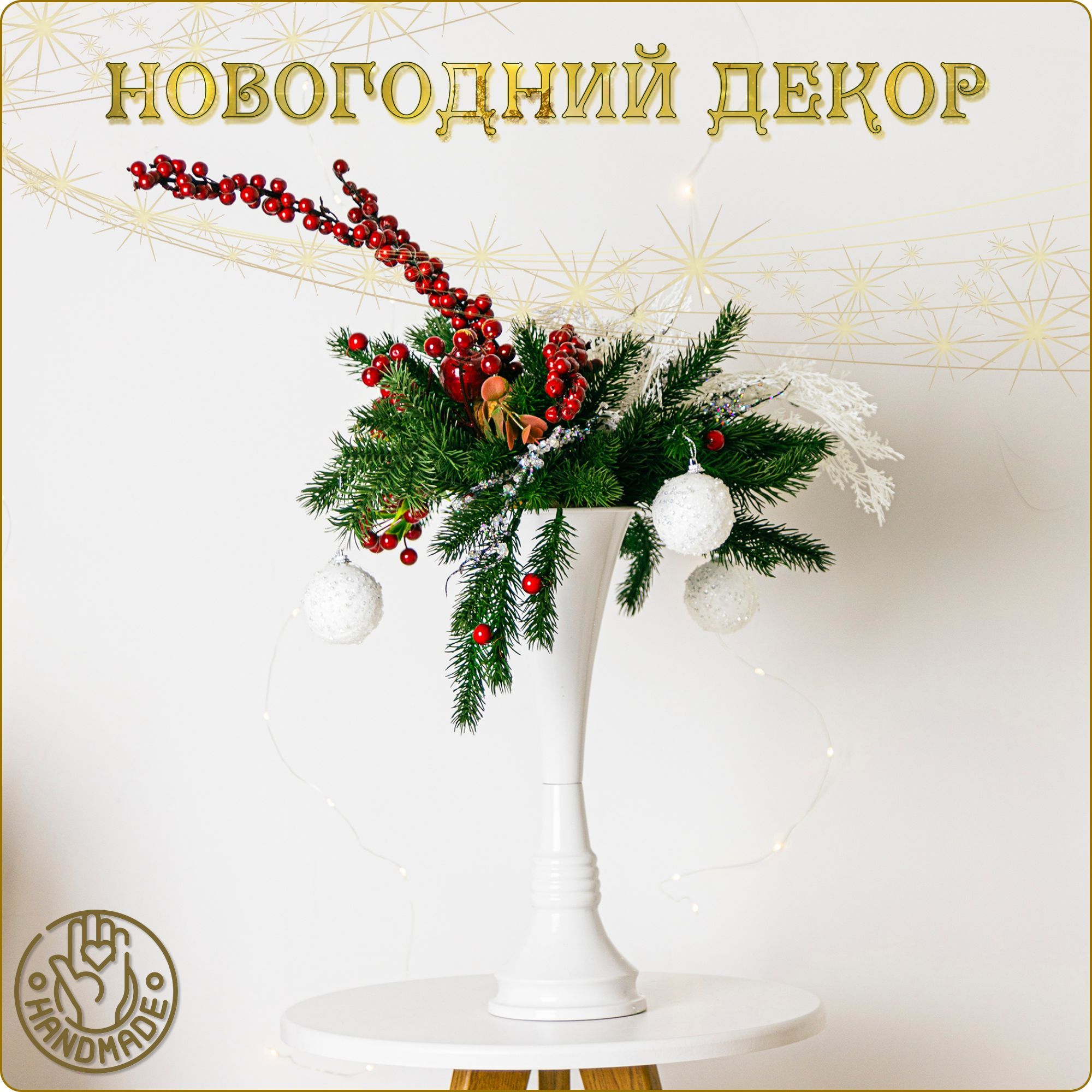 Новогодний декор для дома и интерьера на стол, рождественский букет в высокой вазе с пластиковыми шарами ручной работы, украшение на новый год, 20Х20Х65см