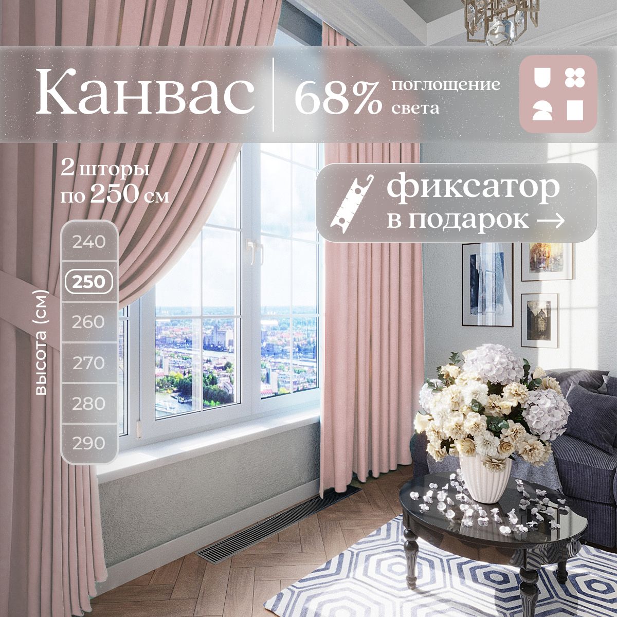 Комплект 2 шторы по 250 х 250 см для гостиной и спальни из плотного турецкого канваса, размер L: 500 х 250 см, розовый,светло-розовый