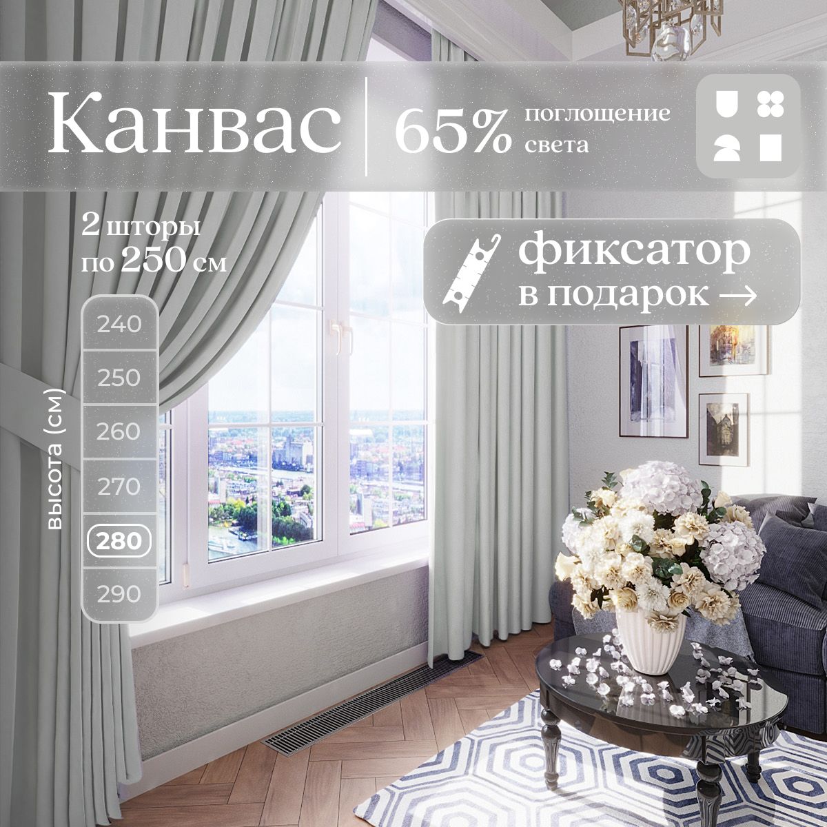 Комплект 2 шторы по 250 х 280 см для гостиной и спальни из плотного турецкого канваса, размер L: 500 х 280 см, светло-серый, белый, жемчужный