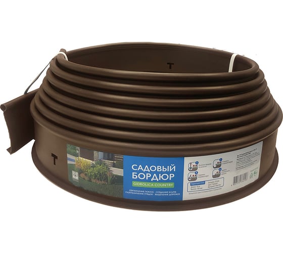 Бордюр пластиковый Gidrolica Country коричневый, 10000x20x100 мм, с отверстиями 7302 31664193
