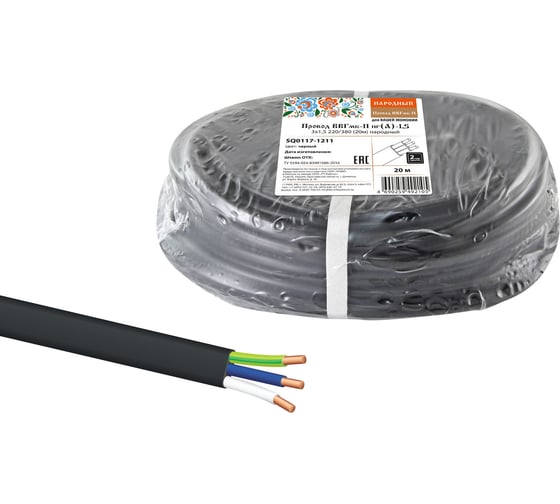 Провод TDM ВВГмб-П нгА-LS 3х2,5 220/380 10м Народный SQ0117-1112 18147835